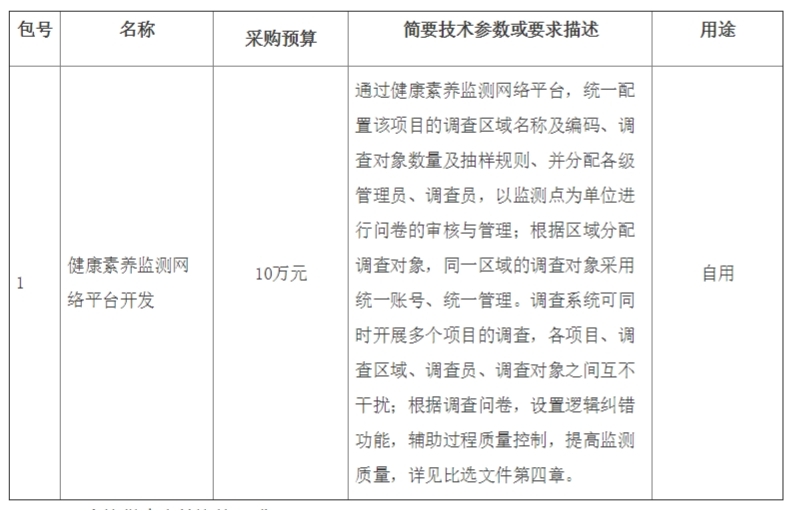 中国健康教育中心就 “健康素养监测网络平台开发”进行比选采购,现邀请合格供应商参加比选响应。