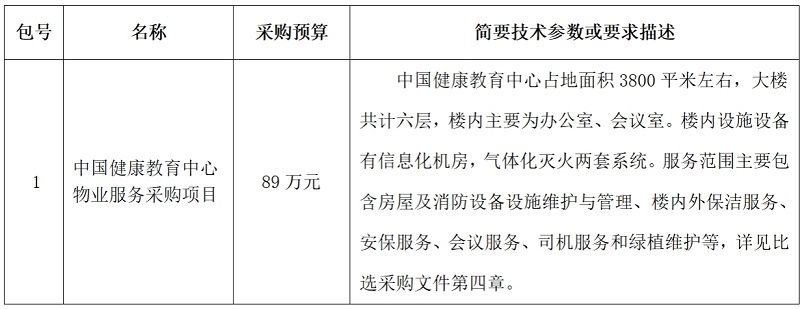 中国健康教育中心物业服务采购项目比选公告