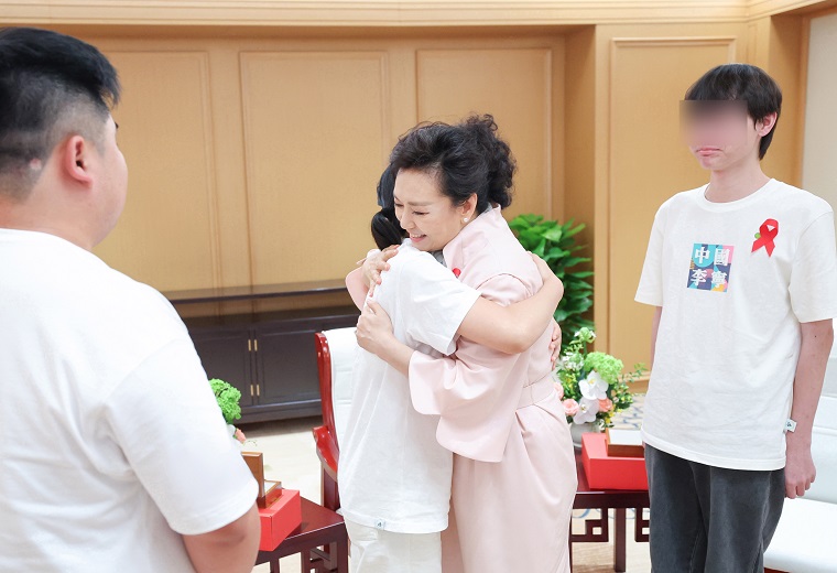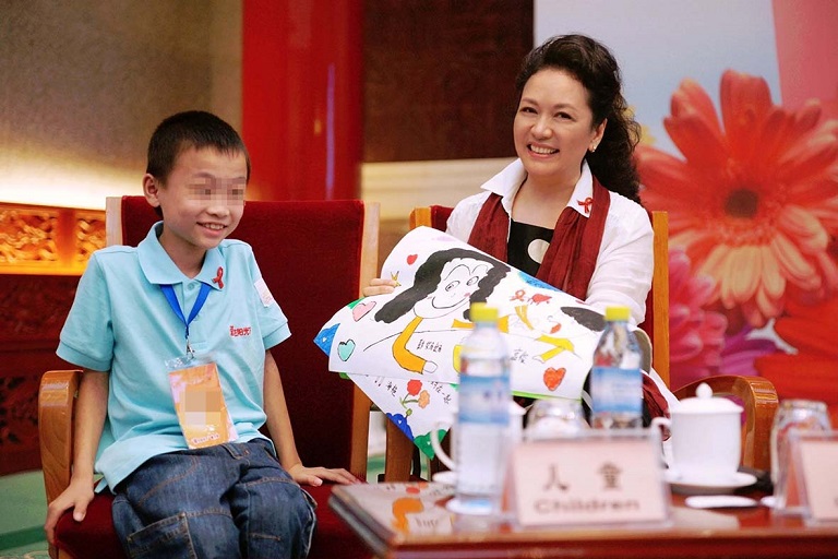 2006年,彭丽媛与受艾滋病影响的孩子们受邀参加“中国的温暖——关注艾滋病致孤儿童,奉献爱心公益行动”大型公益文艺晚会,他们登台共同演唱了公益歌曲《爱你的人》,“人间有泪就会有关怀……爱你的人就叫红丝带”,随着国家“四免一关怀”政策逐步落实,感染儿童得到积极有效救治,受艾滋病影响儿童的生活境遇也越来越受到社会关注。